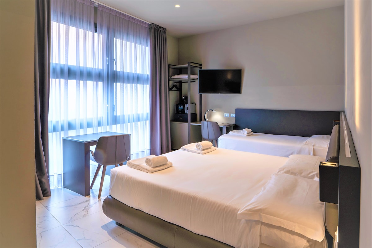 Hotel Aaron, a friendly & familiar hotel close to Venice Mestre Railway station. We offer modern and confortable rooms at a really good value. - Reach Venice in few minutes, 24 H. 5 minute walk from Mestre Railway Station and close of Mestre center - Our staff will be on hand to offer you the best stay in Venice. The Hotel is new-built. All our rooms are furnished with good taste in a modern style. - Professional cleaning and igenization. You'll get a completly clean and safe room
