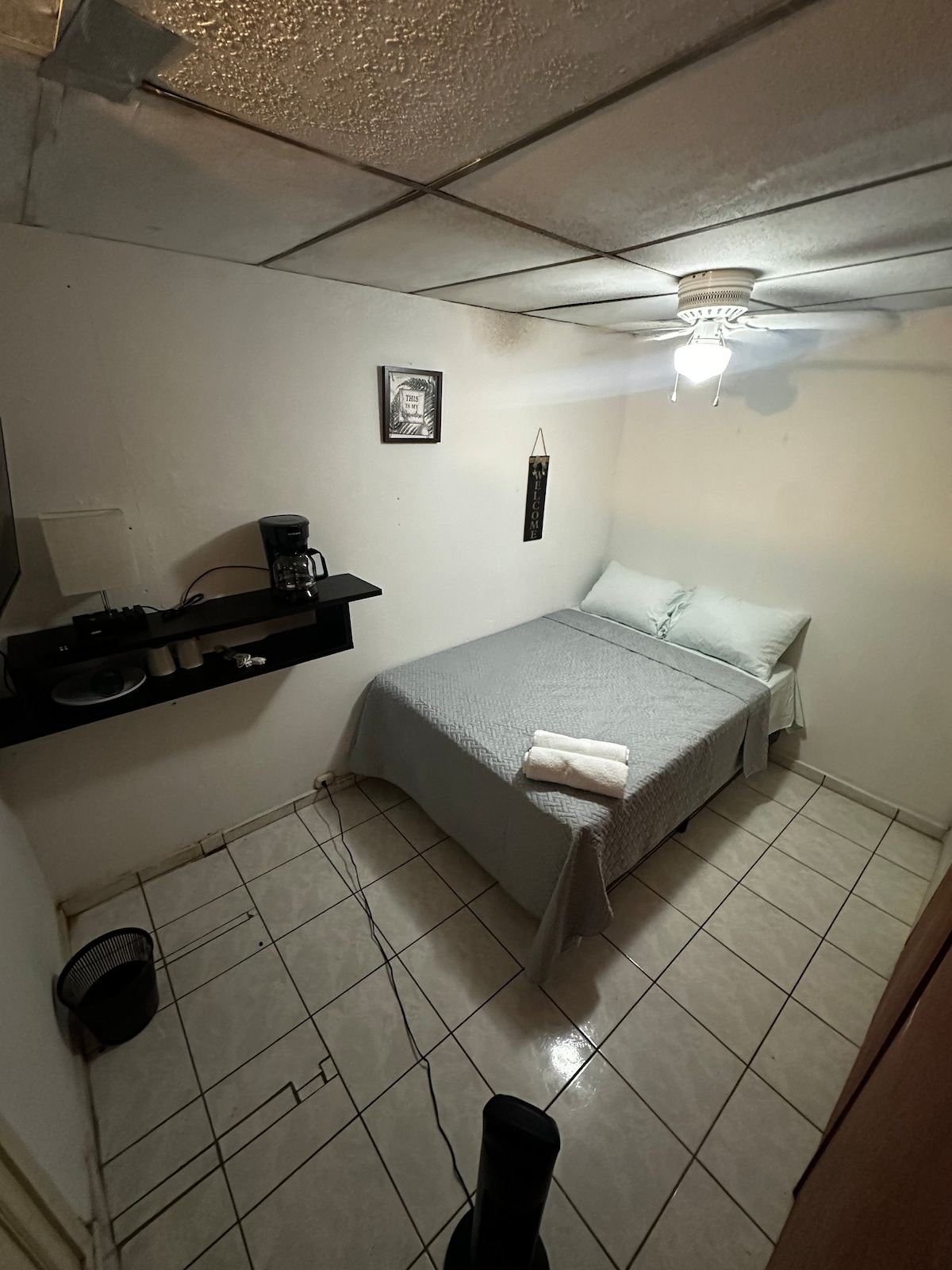 Disfruta de este alojamiento tranquilo y céntrico. Ideal para una persona o pareja. La habitación se encuentra dentro de una casa familiar con acceso independiente con derecho a parqueo en la cochera. Cuenta con baño propio con agua caliente, con espacio de trabajo, Wifi, Tv con FireStick (Netflix, HBO, Disney, etc), cama full, ventilador de techo, mini cocineta (cafetera, micro ondas, etc.) y acceso a lavadora y secadora (área común). Ubicado en Col. Campestre, zona Escalón, céntrico y seguro.