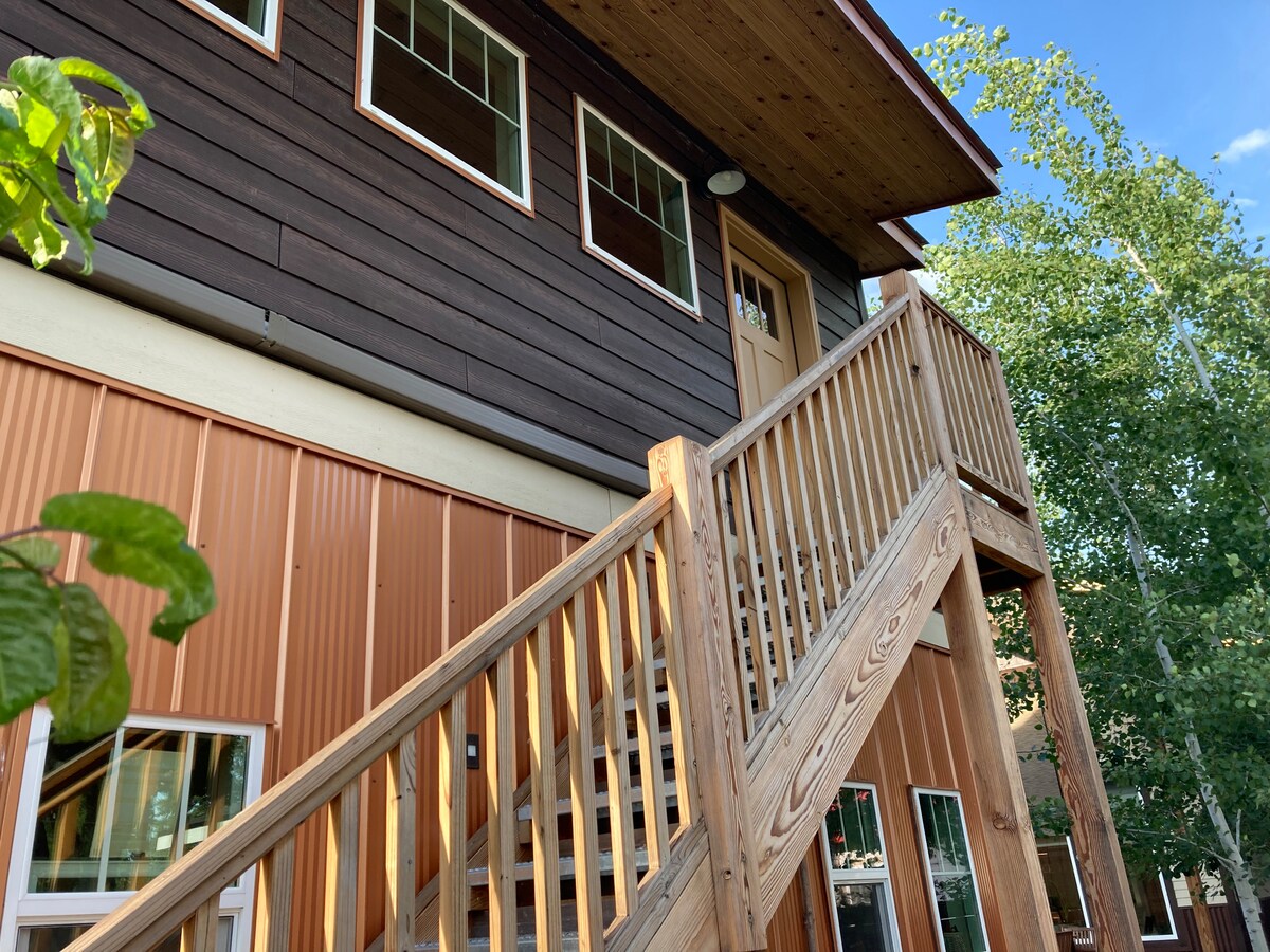 Affascinante monolocale di classe al 2° piano. Cammina o pedala per 8 isolati dritti fino al cuore del centro! Dispone di una cucina ben fornita, wifi, camino elettrico, riscaldamento e aria condizionata mini-split, lavatrice e asciugatrice a basso carico, TV/DVD/stereo bluetooth, bagno completo, letto matrimoniale e molti servizi per il comfort. "Spot Bus" (un autobus GRATUITO per la città e Schweitzer) è dall'altra parte della strada! 30 minuti da Schweitzer e dal parco a tema Silverwood. *Prenotazioni invernali: assumiamo personale per il servizio di rimozione della neve, ma NON è garantito.