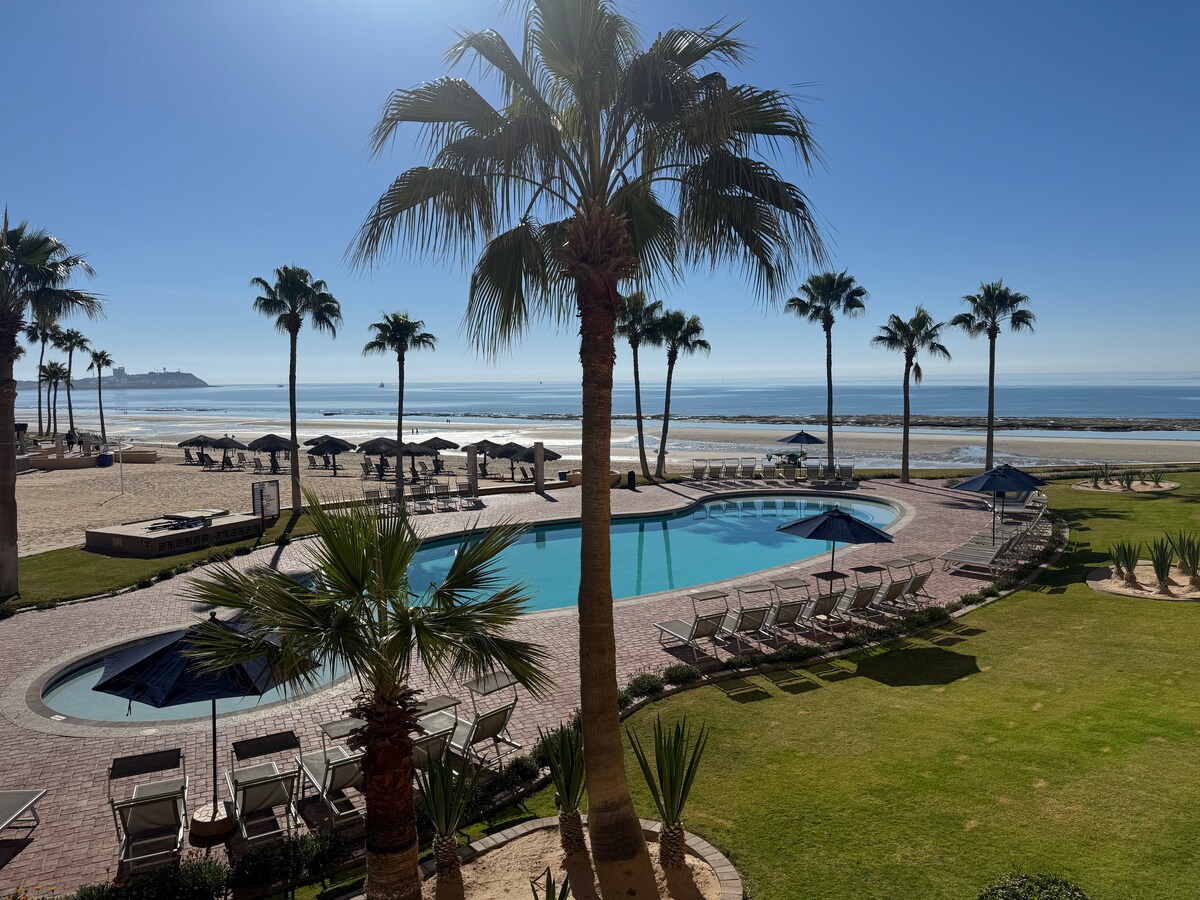 Bellissimo appartamento con 1 camera da letto e una fantastica vista sul Mare di Cortez. Vista perfetta sulle aree piscina del resort dal comodo balcone, con splendide viste su banana boat locali, crociere divertenti, ultralight e jet skier. L'alloggio C305 è arredato con gusto e offre un letto king-size, un letto queen-size nascosto, un piano di lavoro in quarzo, il wifi e due TV. Inoltre, è facilmente accessibile tramite ascensore. Il resort dispone di 3 piscine, piscine per bambini, vasca idromassaggio, palestra e biblioteca. Ottimo ristorante in loco.