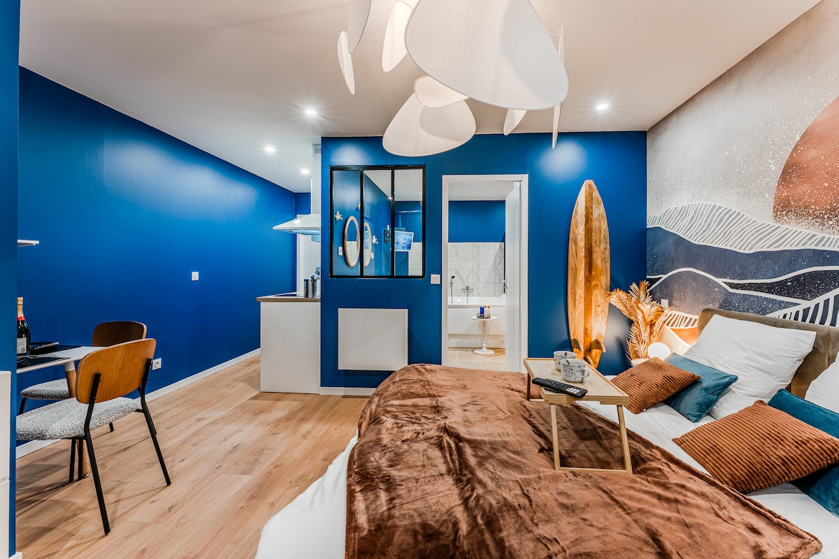 Fuggite da innamorati in questa splendida suite romantica a 2 passi dall'oceano! SORPRESA GARANTITA Arrivo autonomo in totale discrezione Godetevi i nostri servizi privati solo per voi nell'appartamento. Accessibili quando lo desiderate... Ampia doccia a LED per 2 e getti idromassaggio Sauna a infrarossi per 2 Vasca per 2 ( NON BALNEO NÉ JACUZZI) con cascata e bagnoschiuma Poltrona relax vibrante Atmosfera luminosa WIFI + ARIA CONDIZIONATA ESTATE