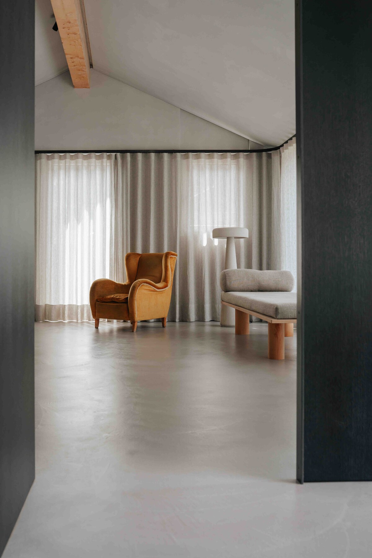 Il loft chez mone & harry è immerso tra frutteti e vigneti ai margini del centro storico di Algund, vicino a Merano, a 5 minuti di distanza in macchina. Attraverso una moderna dependance si accede al terzo piano, dove il product designer Harry Thaler e la curatrice Simone Mair vivono con i loro tre figli. Harry ha trasformato con grande piacere un sottotetto di 50 m2 in un loft da sogno, caldo e minimalista, realizzato con materiali sostenibili.
