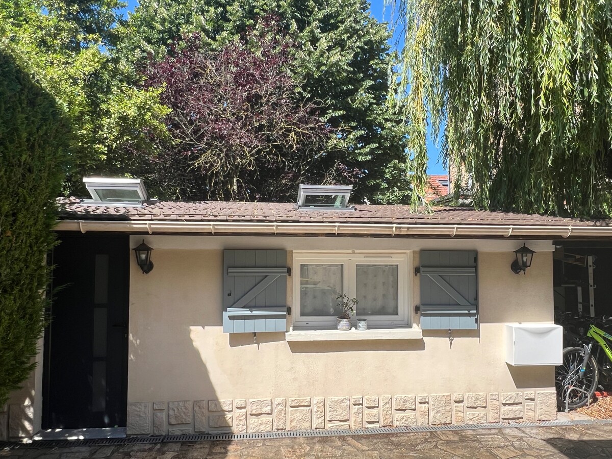 Benvenuti a Framboise e Philippe. Villetta di 23 m², con ingresso privato con vista sul giardino della nostra casa, zona centro città. 20 minuti da Parigi St. Lazare 5 minuti A 15 , 10 minuti a piedi dalla stazione ferroviaria di Sannois, vicino allo Stade de France e a tutti i servizi e a tutti i servizi. Una camera da letto per 2 persone 140 x 190, divano letto per 2 persone, TV , wifi in fibra, angolo cottura, frigorifero, microonde, lavatrice. Lenzuola, bagno. Parcheggio 2 ruote, auto parcheggio su strada gratis.