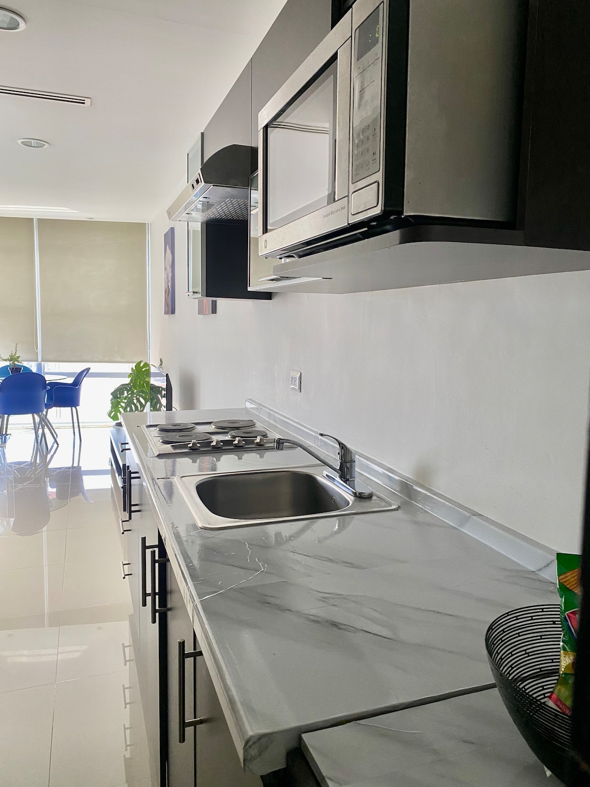 La migliore posizione e la vista a 360° su Monterrey! Attico completamente ristrutturato con finiture di lusso e sistema Alexa. 2 schermi da 65'' e 50" con Firestick (canali ed eventi). Situato in una zona di facile accesso e con sicurezza. Attico a 2 piani: Parte inferiore: cucina, sala da pranzo, area sociale con divano letto; tavolo in onice; camino, congelatore, bagno completo, TV e terrazza (poltrone) Parte superiore: camera da letto, letto matrimoniale, TV, minibar e scrivania Piscina, palestra e sala riunioni