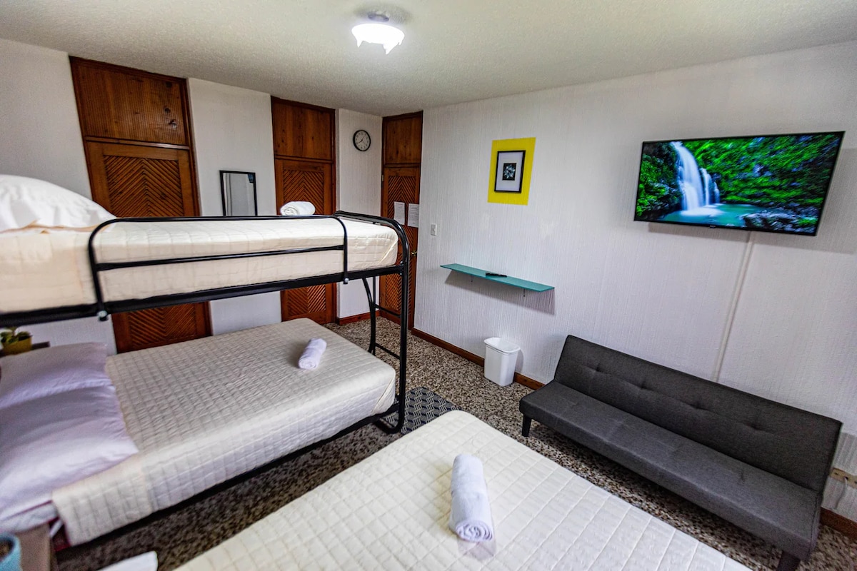 Welcome to Comfy Stay - Casa Blanca, Zone 9! 🏡✨ Enjoy a private room (#2) with its own bathroom and a full-size bunk bed, perfect for 2 people comfortably, but can accommodate up to 4 people at an extra cost. Centrally located: near IGSS, Parque de la Industria, and La Terminal. Just 5 minutes from Zones 4 and 10, and 10 minutes from La Aurora Airport. Included services: Parking, Water and WIFI.