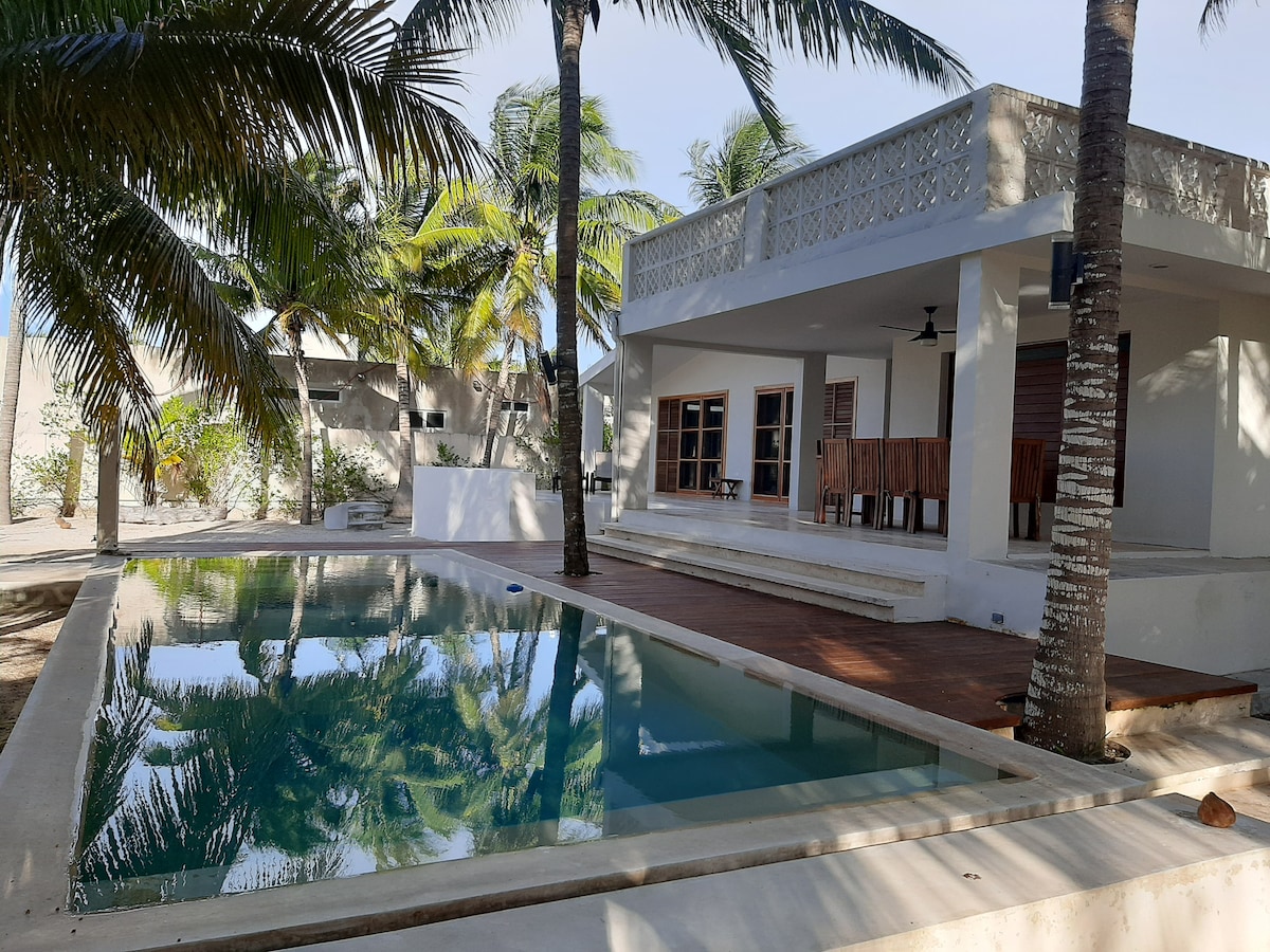 Casa in stile minimalista sulla spiaggia, dispone di tre camere da letto dotate di aria condizionata, due bagni completi con acqua calda e fredda; cucina, soggiorno con aria condizionata e una piscina con vista sul mare. Potrai godere della tranquillità di questo bellissimo porto di Dzilam de Bravo. La casa si trova a soli 500 metri dal porto. Sul posto potrai trovare tutti i servizi, pesca, gite in barca, cibo delizioso in diversi ristoranti, negozi, farmacie, chiese, ecc.