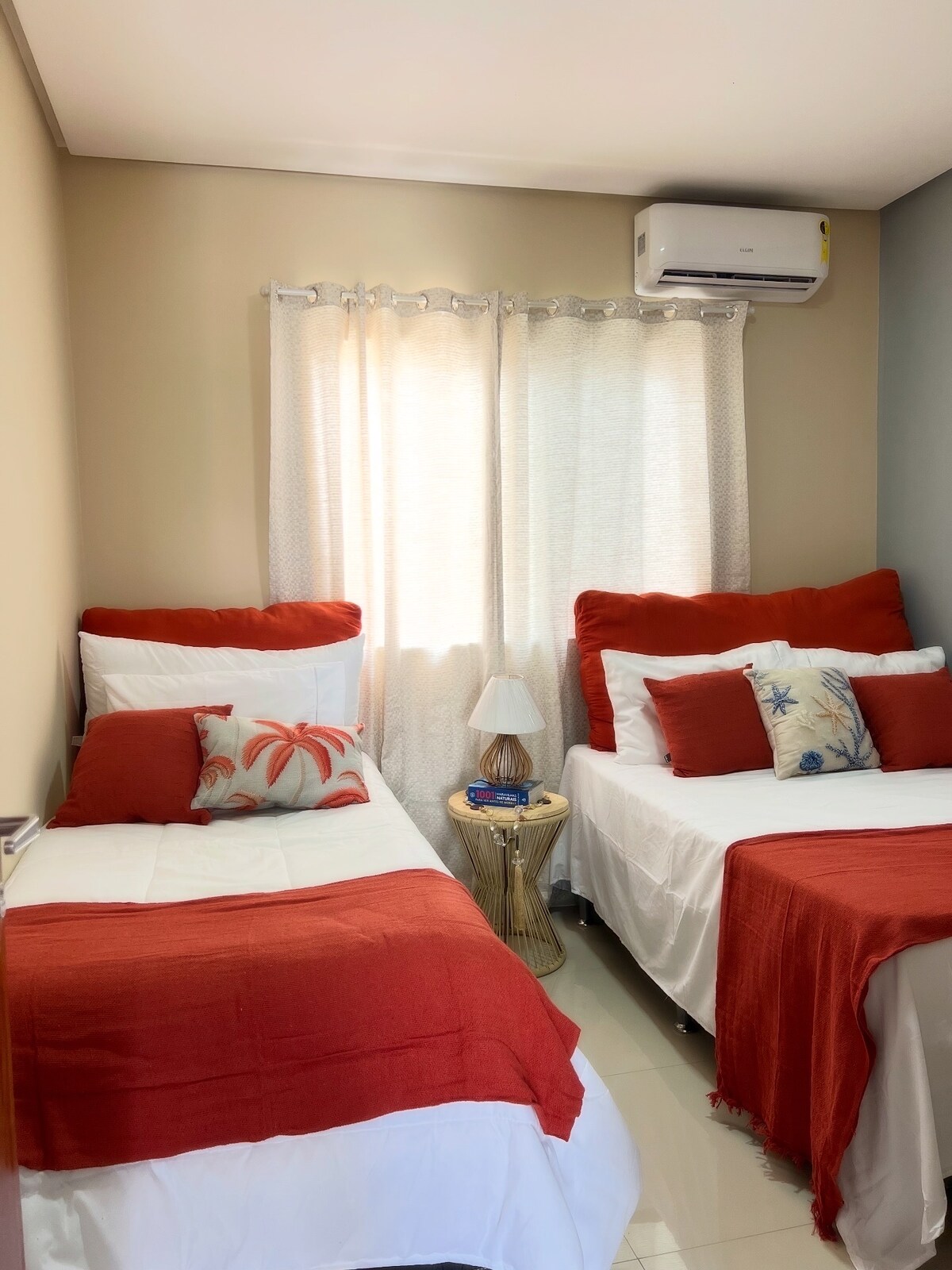 Soggiorna in un accogliente appartamento vicino alla spiaggia con comfort e tranquillità. Situato in Coroa Vermelha vicino alla spiaggia, fiera indigena e principali commerci (Supermercati, pizzerie, botteghe artigiane e prodotti vari). Questo appartamento dispone di: - 2 camere da letto, entrambe con aria condizionata, soggiorno con divano e TV - Cucina completa di tutti gli utensili, piano cottura e forno elettrico. 2 bagni - Area con barbecue e doccia esterna - Parcheggio privato - Asciugamani e lenzuola