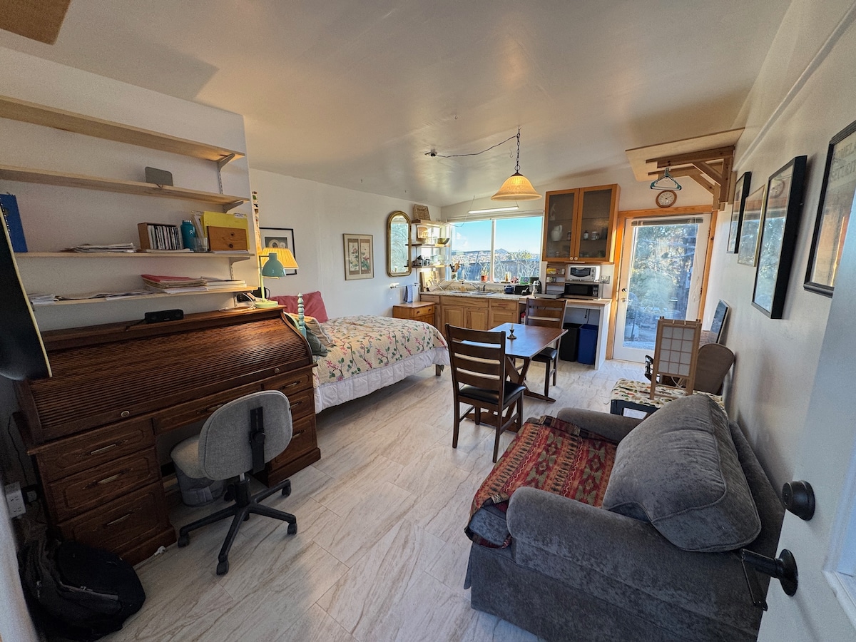 Un ospite che ha soggiornato di recente ha inviato questo messaggio: "La migliore esperienza AirBnB di sempre! Io e mio marito abbiamo apprezzato il nostro soggiorno tranquillo. Grazie di tutto." Questo appartamento per gli ospiti completamente ristrutturato dispone di una cucina completamente attrezzata, un letto king-size, un ampio patio e una lavatrice/asciugatrice. La mia casa si trova su quasi 3 ettari, offre viste sulle montagne, sull'alba e sul tramonto, e si trova a pochi passi da 4 musei di fama mondiale e dal giardino botanico. Il Plaza, Canyon Road e il Railyard District sono rapidamente raggiungibili in auto.