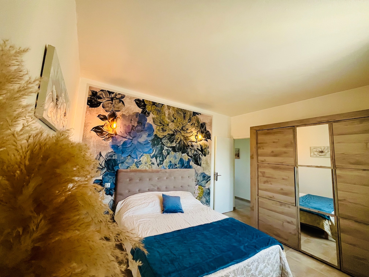 Appartamento di 78 mq, con cucina, soggiorno, 2 camere da letto, bagno, completamente climatizzato Terrazza esterna di 50 m² tavolo, sedie, 4 lettini e plancha. L'arredamento è moderno e raffinato. Sarete in una zona chiusa e sicura. Nessun dirimpettaio. Vicino alle spiagge più belle, alla montagna. I negozi sono a 2 minuti. Trascorrerete un ottimo soggiorno, tranquillo, ideale per le famiglie. Saremo presenti ad accogliervi e consigliarvi Biancheria da letto e teli mare sono inclusi.