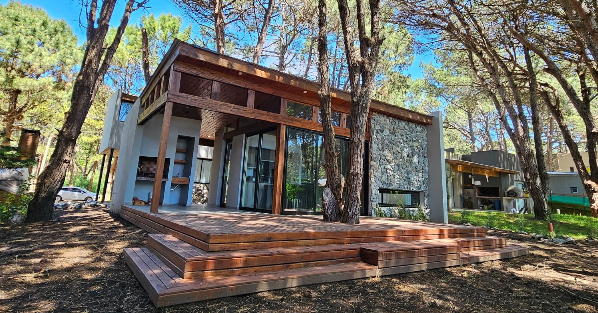Descubra La Soñada, una espectacular casa de alquiler a solo 3 cuadras del mar rodeada de naturaleza y un parque arbolado. Perfecta para familias y grupos de amigos, esta casa tiene capacidad para 10 personas y cuenta con área de solarium y parrilla quincho para disfrutar del aire fresco y comidas al aire libre. Con 3 baños completos y habitaciones con camas tamaño king e individuales, todos tendrán su espacio cómodo. Las galerías de la casa ofrecen vistas impresionantes del bosque circundante.