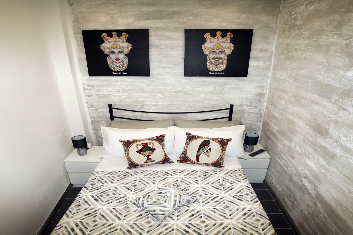 Nel cuore del quartiere storico di San Berillo, Casa delle Belle, saprà regalarti un soggiorno romantico e indimenticabile. Da sempre luogo dell'amore, avrai modo di rifugiarti tra le sua mura storiche grezze ma ricche di fascino. Oltrepassando la porta turchese, le scale all'ingresso vi condurranno alla suite al primo piano arredata con gusto e dai colori caldi. Avrai modo di rilassarti in terrazza o di assaporare la movida del centro storico del quartiere e della città. Ti rimarrà nel cuore