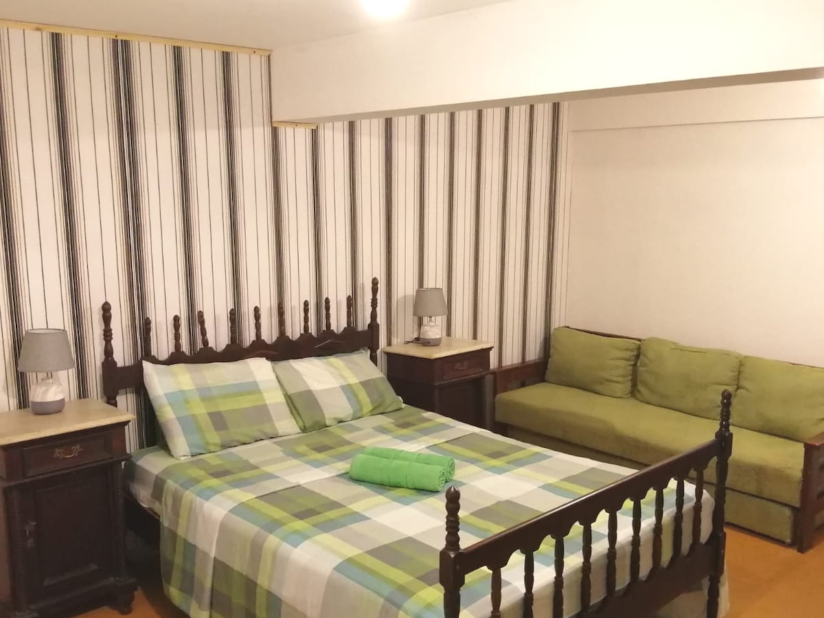 abbiamo una spaziosa camera da letto con vista sul giardino anteriore attraverso una grande finestra, il balcone è a graticcio e coperto in modo che sia sicuro. Il letto e le sedie sono Luigi XV con biancheria, asciugamani, Smart tv, stufa a legna (la legna è a carico dell'ospite) e aria condizionata. Abbiamo una seconda camera da letto con due letti singoli. anche una piccola cucina completa di utensili di base.