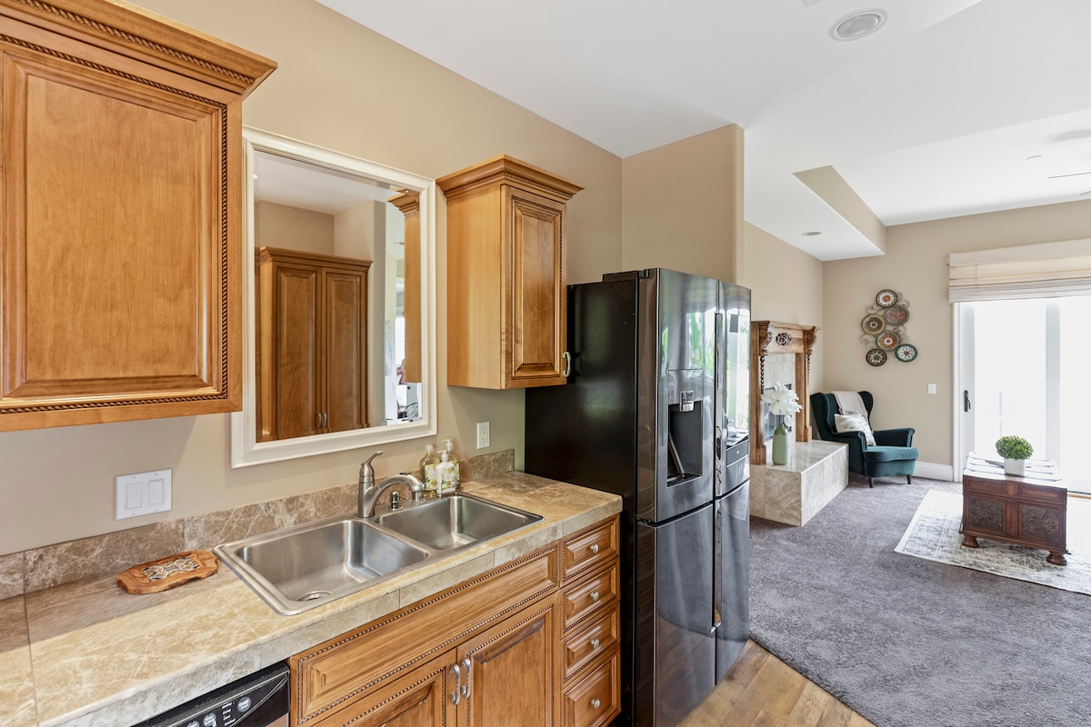 Ampio monolocale ristrutturato vicino a Disneyland e al centro congressi di Anaheim, all'Anaheim Honda Center/Stadium, all'UCI Medical Center, alla Chapman University e all'Orange Circle. Un letto Serta CalKing di fascia molto alta. Cucina completa. Bagno privato. Facile accesso alle autostrade. Vicino a Target, ristoranti, In-N-Out Burger e supermercato. Quartiere bello e tranquillo. Parcheggio gratuito. Ammira i fuochi d'artificio del 4 luglio dalla tua suite. Minimo due notti.