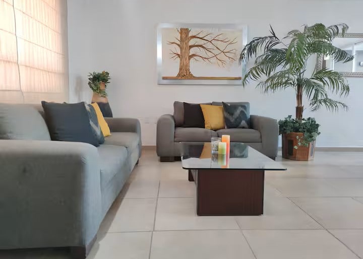 Disfruta de uno de los departamentos más bonitos, diseñado para brindar comodidad y estilo. Ideal para familias, equipos de trabajo o viajeros solos, cuenta con espacios amplios, decoración moderna y todos los servicios esenciales: Wi‑Fi rápido, cocina equipada, alberca, jacuzzi, aire acondicionado y estacionamiento Ambiente acogedor y seguro, perfecto para una estancia inolvidable