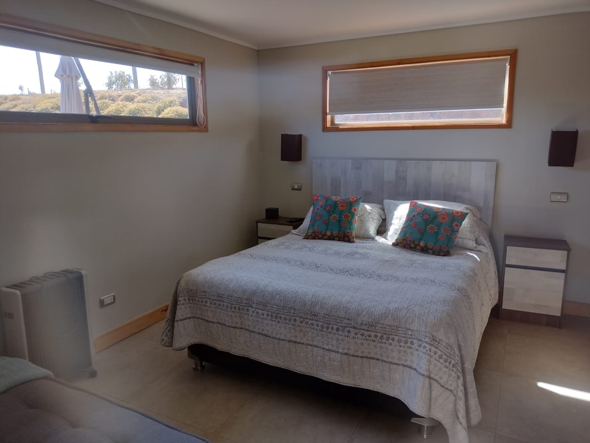 Accogliente e spaziosa baita completamente attrezzata per 5 persone, con zona barbecue e parcheggio privato. Situato in un tranquillo quartiere residenziale, nel cuore di Quisco. Ideale se quello che vuoi è staccare la spina, rilassarsi e ricaricare le batterie. SEI VICINO A TUTTO! A 3 minuti dal centro e a 5 minuti a piedi dalla spiaggia. TROVI TUTTO! Proprio accanto a un negozio di fruttivendoli, a un passo dal supermercato, bancomat, ristoranti, farmacie e un centro benessere.