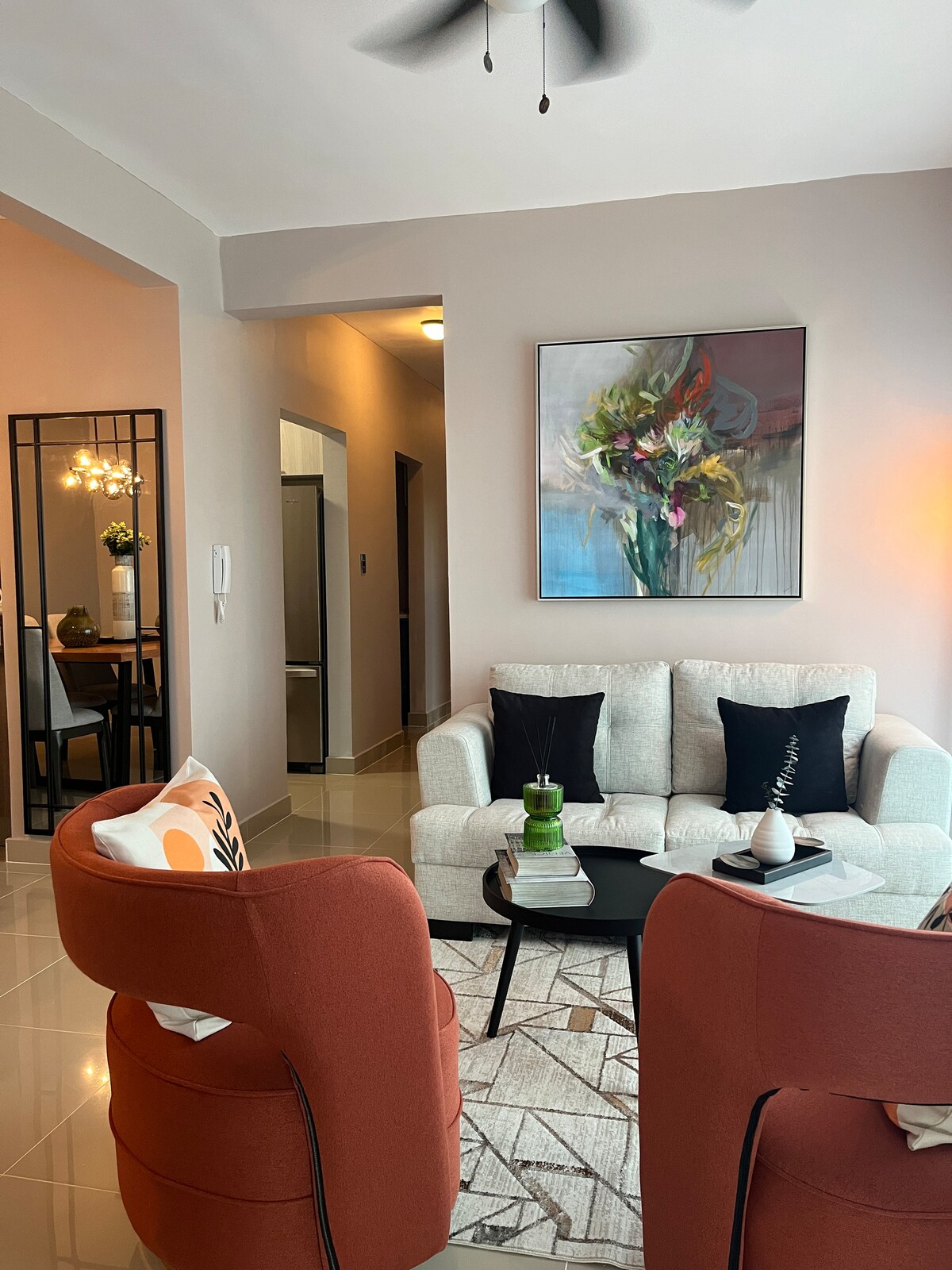 Godetevi un'esperienza elegante in questo alloggio centrale. Un NUOVO grazioso appartamento moderno con 1 letto e 1,5 bagni e parcheggio gratuito disponibile a La Esmeralda Santiago, situato proprio nel centro della città. L'appartamento è completamente arredato con un letto di buone dimensioni, una TV a schermo piatto 2HD, internet ad alta velocità e servizi in cucina.
