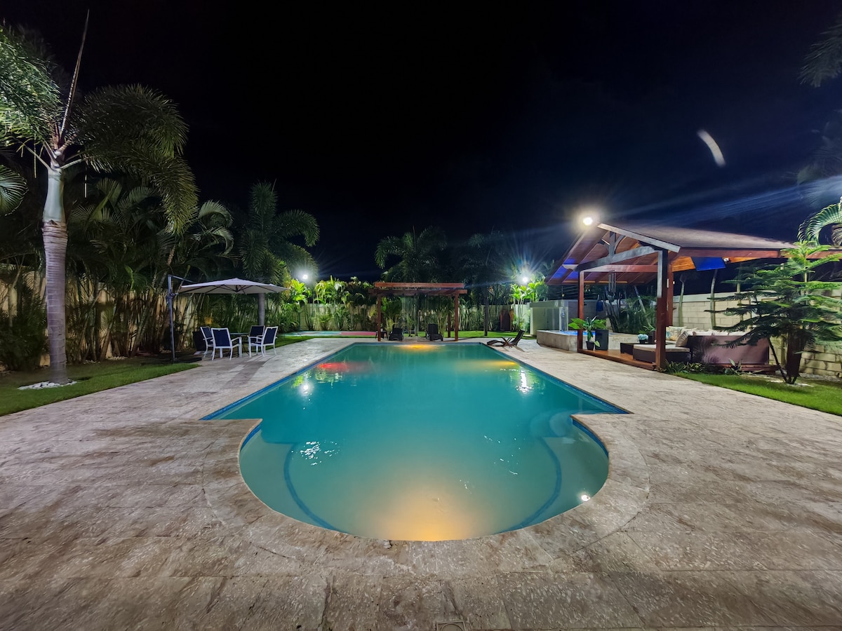 Fuggi nel tuo rifugio privato a Santo Domingo Este! Questa villa di lusso offre una piscina privata con cascata, una jacuzzi per 12 persone, un campo da basket, una cucina da chef, camere con aria condizionata e Wi-Fi veloce. Perfetta per famiglie e nomadi digitali — con scrivania per lavorare e culla inclusa. Ospita comodamente fino a 10 persone.