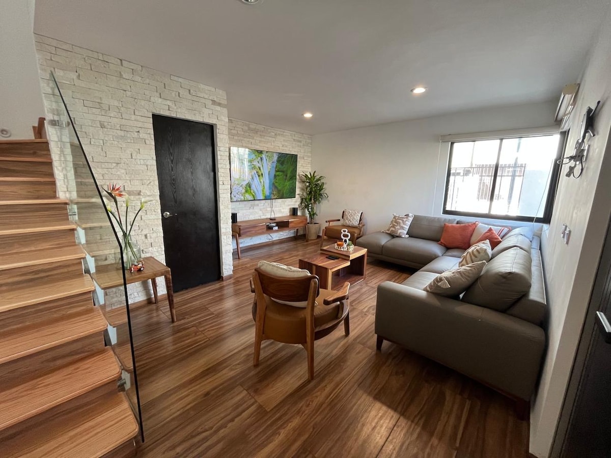 Grazioso e molto accogliente piccolo appartamento per godere di un soggiorno tranquillo per lavoro o riposo, vicino a centri commerciali, banche, negozi, aeroporto AIFA, barbieri, Paseo ventura, Plaza las Américas, tutte le strade vicine. ecc. Goditi questo alloggio che dispone di riscaldamento solare, grill a induzione, Smart TV da 58 pollici, letto matrimoniale e il calore e lo stile offerti dall'alloggio. Sentiti al sicuro all'interno di questo alloggio.