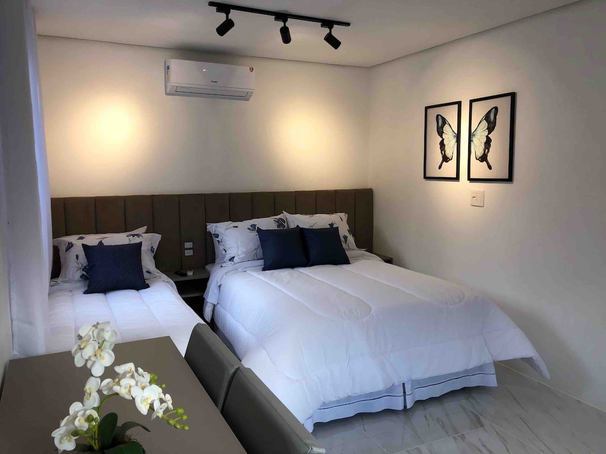 Goditi questo spazio elegante e accogliente! Loft con spazi integrati! La cucina è completa di tutti i nuovi elettrodomestici e la camera ha un letto matrimoniale e un divano letto matrimoniale! Aria fredda e calda! Ottima posizione! Di fronte al lago Joaquina Rita bier! Di fronte alla pizzeria Héctor! Rua Torta 300 m, Colonist Fair 300 m, Cara de Mau 330 m Pizzeria, Rua Coberta 900 m. Mercato Carrefour a 400 m, farmacia a 300 m, stazione degli autobus a 300 m! Parcheggio coperto a rotazione all'interno dell'edificio!