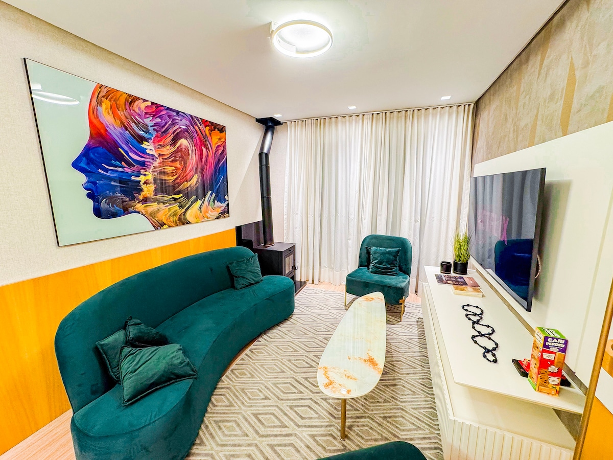 Divertiti con tutta la famiglia in questo luogo pieno di stile, dove comfort e vista unici si incontrano! Il nostro appartamento fa parte del Serra Class, uno dei più recenti progetti a Canela. Ambienti climatizzati, cucina completa integrata con soggiorno con camino, un'accogliente camera da letto e un bagno con servizi. Goditi la natura e una vista mozzafiato sulla Cattedrale di Pietra e sulla nuova Ruota Panoramica. Sperimenta l'eleganza e goditi i vari comfort della Serra Class