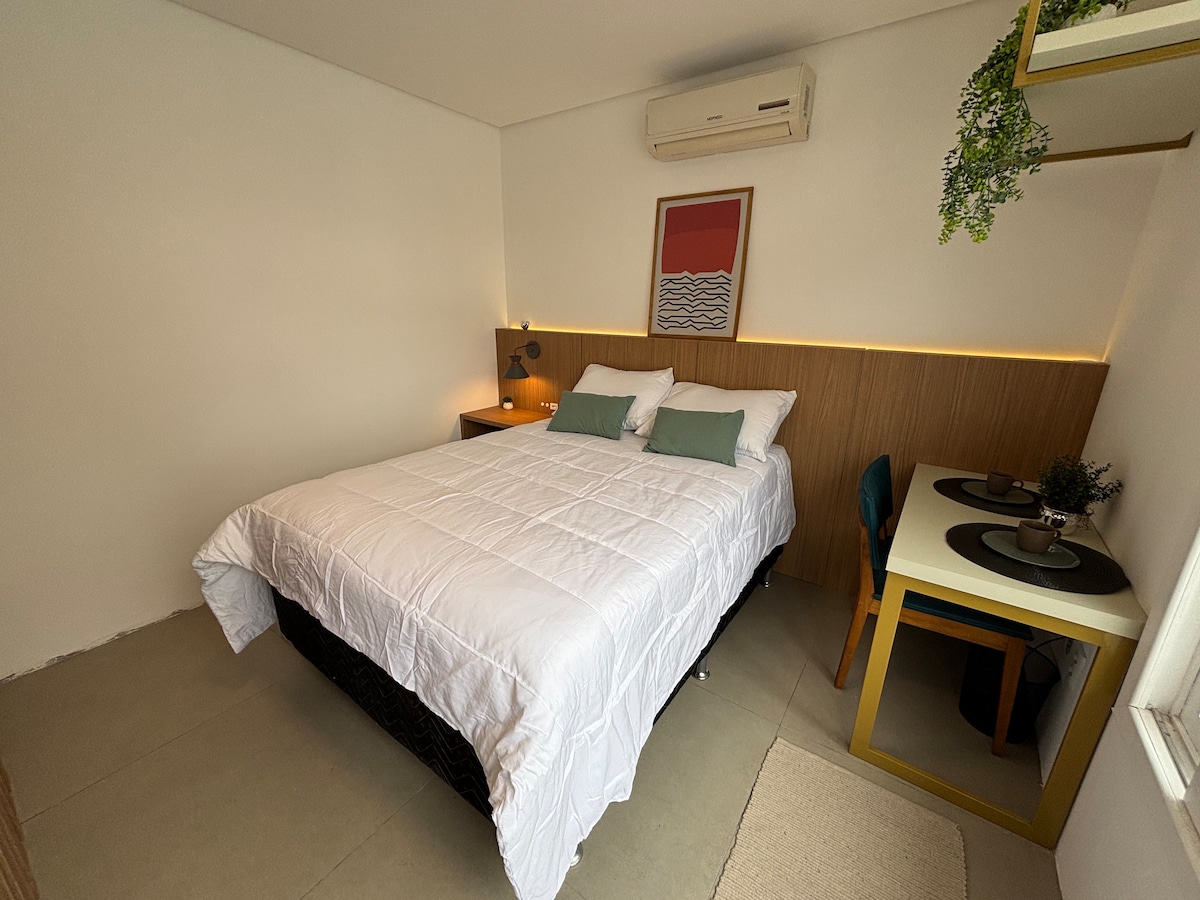 Monolocale funzionale e molto ben attrezzato, ideale per chi cerca comfort e praticità. Dispone di lavatrice e asciugatrice, aria condizionata, smart TV con Netflix e Prime Video, cucina e Wi-Fi veloce, perfetto sia per viaggi di lavoro che per momenti di riposo. Ottima posizione: nell'Estreito, a pochi minuti dal centro di Florianópolis, vicino all'ospedale di Florianópolis, allo stadio Orlando Scarpelli e al Beiramar Continental. Progettato per un soggiorno pratico e confortevole. Con garage.