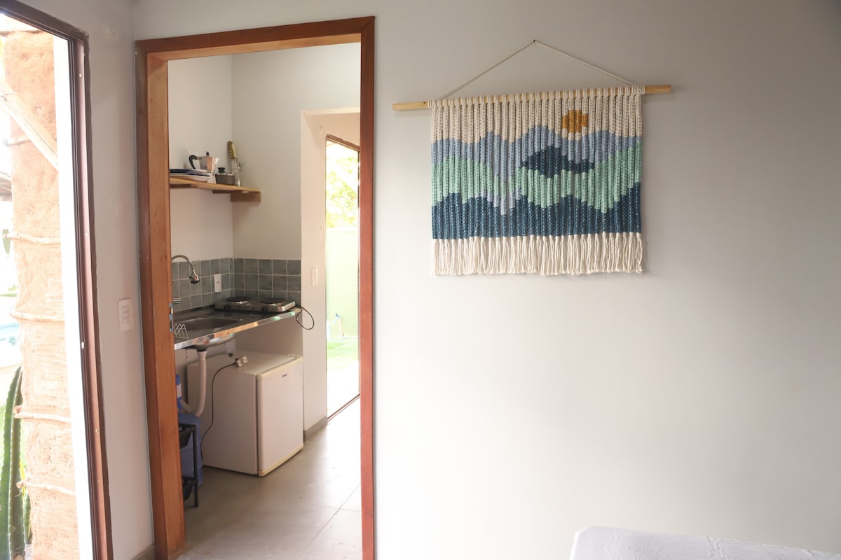 Con la preoccupazione di aumentare gli alloggi per scopi di home office e di svago, abbiamo cercato di rendere l'ambiente il più piacevole possibile e con Internet veloce per questi scopi. La cucina dispone di frullatore, forno elettrico, piano cottura elettrico, tostapane, macchina per il caffè dolce gusto, frigobar 127L e utensili di base. Soggiorno con smart TV 32", divano letto e cassaforte. Il bagno con doccia elettrica, asciugacapelli e set di cortesia incluso. Nella camera da letto, letto matrimoniale con lenzuola incluse e aria condizionata 12 mila btus