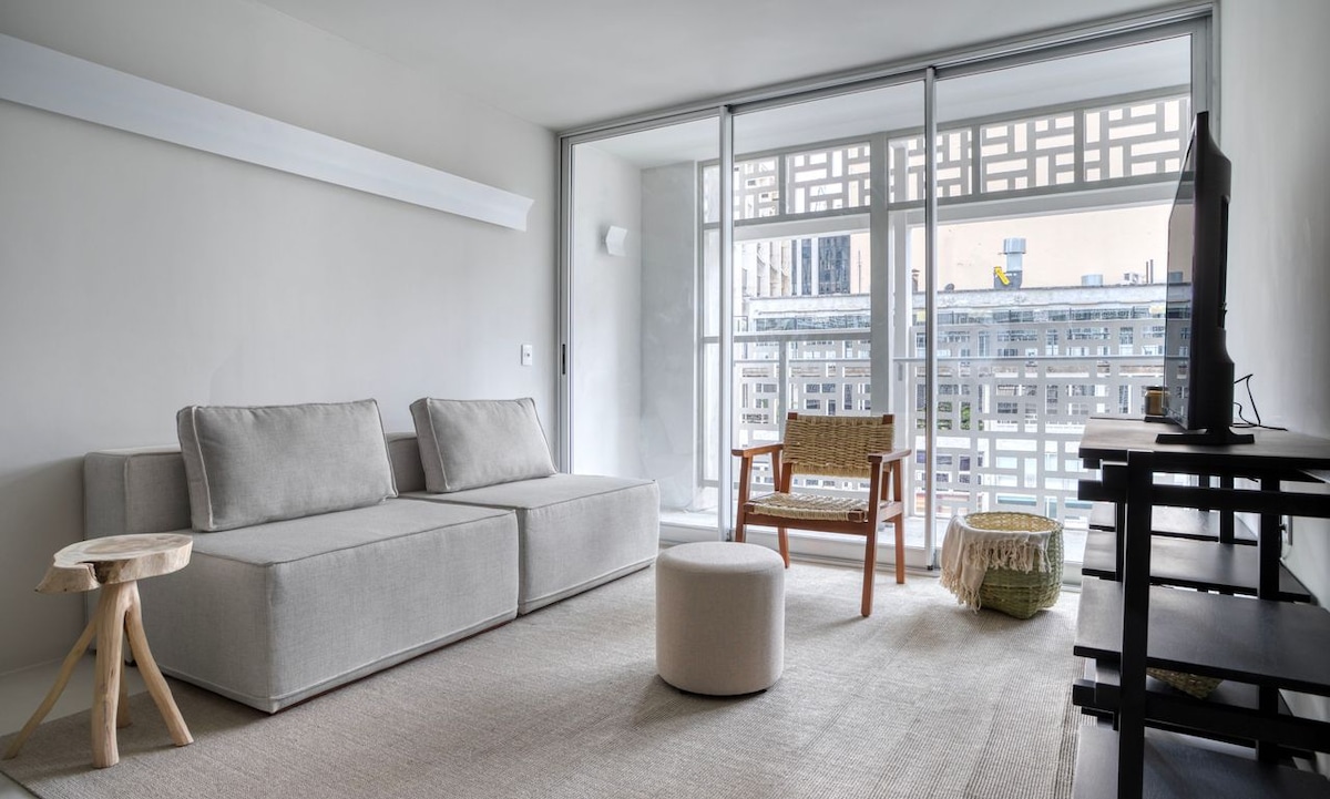 Vivi i giardini con l'eleganza di un boutique hotel e la privacy di una vacanza esclusiva. No V3rso Jardins by Emiliano, monolocale di lusso con comfort e posizione strategica. Na Alameda Santos, a 1 isolato da Av. Paulista e vicino a Oscar Freire e MASP, con facile accesso a Sírio-Libanês, Nove de Julho, Santa Catarina, Samaritano e HCor, oltre a FIAP. Vicino alle stazioni di Trianon-MASP e Brigadeiro. Nell'edificio: • Piscina e sauna • Palestra • Coworking • Mercadinho