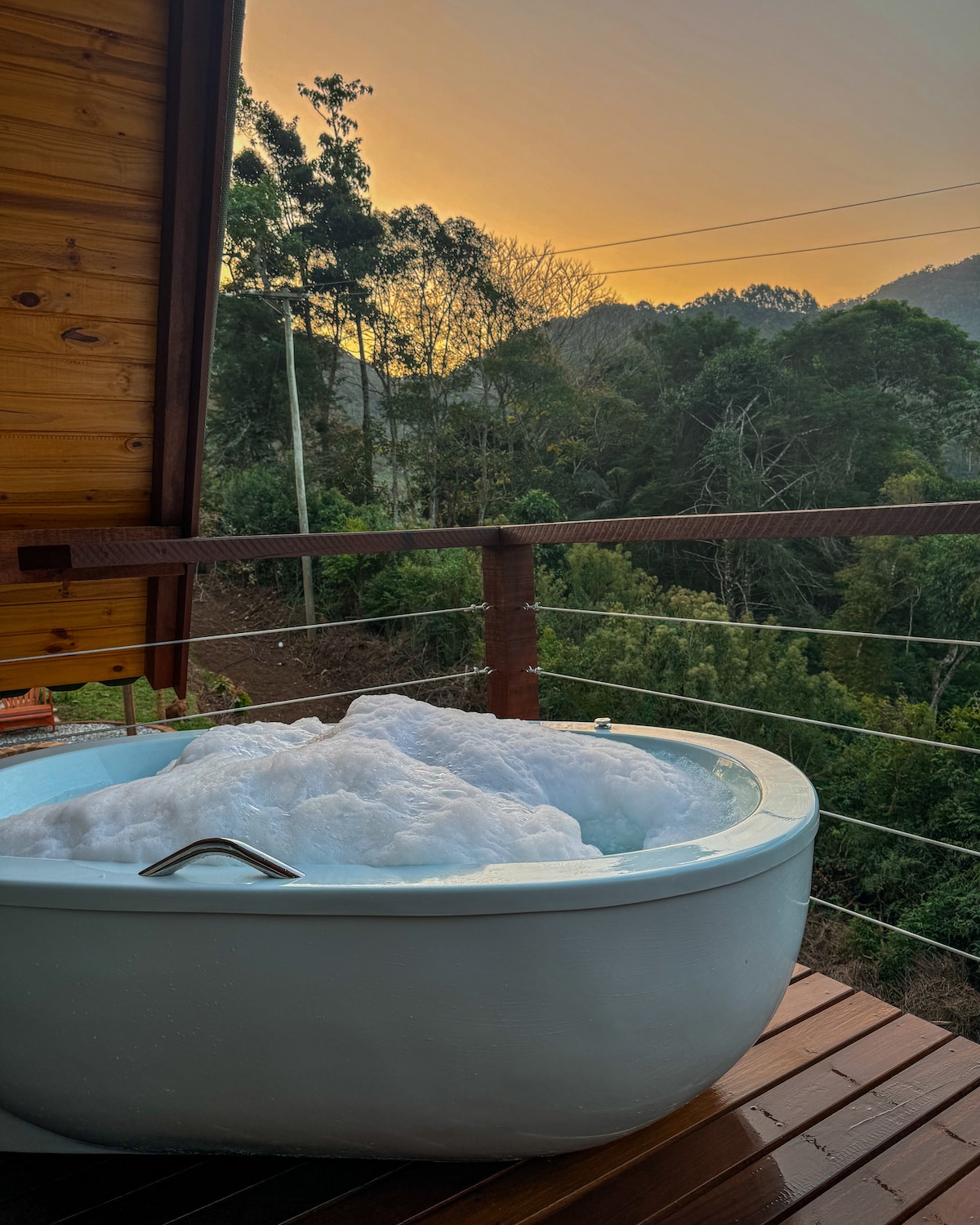 A CABANA AL NOOR é um refúgio completo exclusivo para 1 casal com: - Wifi - Tv smart 40" - cama queen - ar condicionado split quente e frio - roupeiro - mini cozinha completa - frigobar - jacuzzi externa com água quente - banheiro privado - deck em madeira - jardim externo - área de fogo de chão. - chuveirão externo - Relaxe neste espaço calmo e cheio de estilo envolto a mata nativa da região com uma vista linda do Vale da Pedra Aguda.