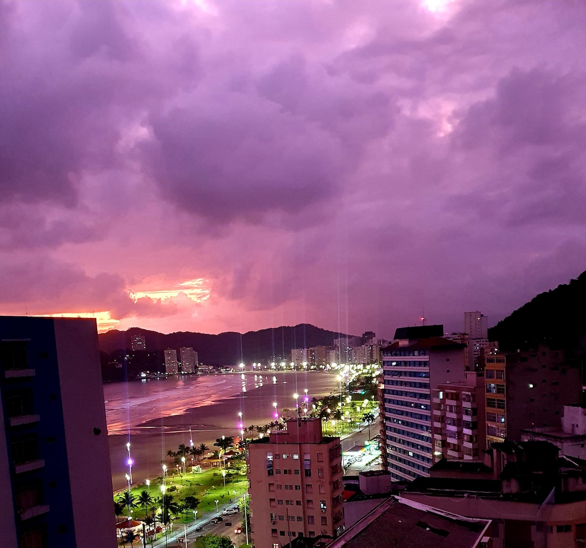 Apto com vista pro mar, climatizado e em frente a praia (pé na areia). Com vaga de garagem e portaria 24h! Vídeo do apto em @airbnb.studios Localizado em uma das melhores regiões de São Vicente, próximo ao shopping, centro e supermercado. Com uma confortável cama de casal, já com a roupa de cama. Além de TV de 50” com NETFLIX. Cozinha completa com fogão, geladeira, microondas, mesa com 4 banquetas e jogo de louça. Com área de serviços. Com vaga de garagem interna.