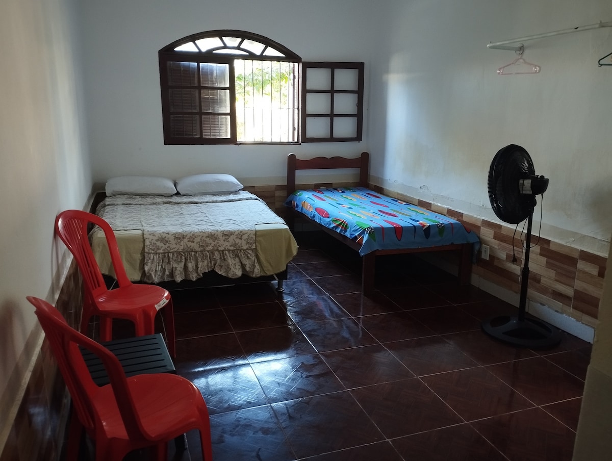 Singolo Coniugato, stagionale, quartiere di Porto da Roça, a 4,5 km dalla spiaggia e dalla chiesa di Saquarema, struttura semplice, ma molto accogliente, smart TV, frigorifero duplex, wi-fi - casa in lastra, ben ventilata, ma prende il sole pomeridiano, quindi, con questo caldo, la casa è molto calda, ideale per chi trascorre la giornata in spiaggia, lagune, touristando. Ha due ventilatori. Non sono ammessi animali. Come puoi vedere nella foto, non ci sono pareti o cancelli. Svegliati con i suoni di uccelli, cime e cicale.