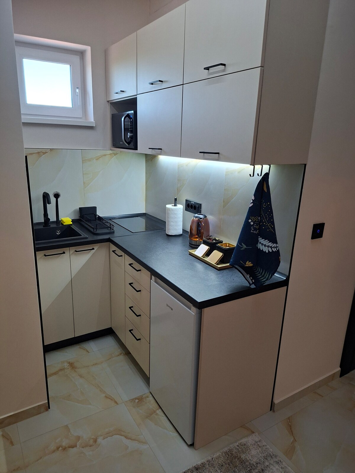 L'attenzione è rivolta ai più piccoli dettagli, in modo che i nostri ospiti possano provare il vero edonismo, godersi la sauna a infrarossi, la vasca idromassaggio, la doccia con massaggiatori e una cascata nell'area spa. Nell'appartamento gli ospiti possono utilizzare l'area ufficio, la sedia con cassaforte, la cucina, la macchina per il caffè, l'acqua e la preparazione del tè. Due biciclette con cui andare in giro per la città e che scendono con un ascensore appositamente progettato con la semplice pressione di un pulsante, TV, wifi con flusso veloce, purificatore d'aria e ionizzatore, aria condizionata...