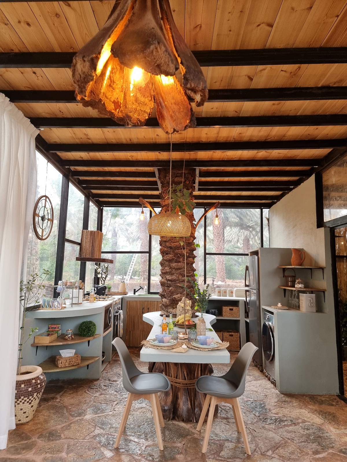 Fuggi ad AlUla e rifugiati in una straordinaria fattoria dalle pareti completamente trasparenti. Questa casa unica vanta una vista mozzafiato sulle montagne ed è circondata da una splendida fattoria. All'interno, una zona giorno aperta e spaziosa inondata di luce naturale e una cucina da sogno con una vista insolita e tutti gli elettrodomestici di cui hai bisogno. Al piano superiore, troverai una camera da letto accogliente con biancheria da letto di lusso e una vista mozzafiato. Non perdere l'occasione di vivere un'esperienza unica nel cuore del paradiso terrestre.