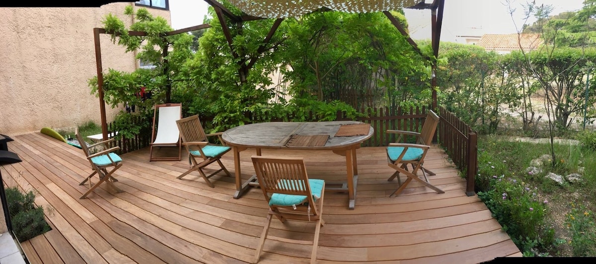 Situato nel centro della città di Carry-le-Rouet e a 100 metri dal porto. L'appartamento è su un solo livello, di architettura contemporanea, accogliente e totalmente indipendente. Si trova in una strada tranquilla con poco passaggio. C'è un giardino di 60mq, indipendente esposto a sud-ovest, in estate sarete accompagnati dal canto delle cicale con sedie a sdraio e ombrellone che vi faranno trascorrere piacevoli momenti di relax. Posto auto. Terrazza. Proponiamo gite in barca. Fibra