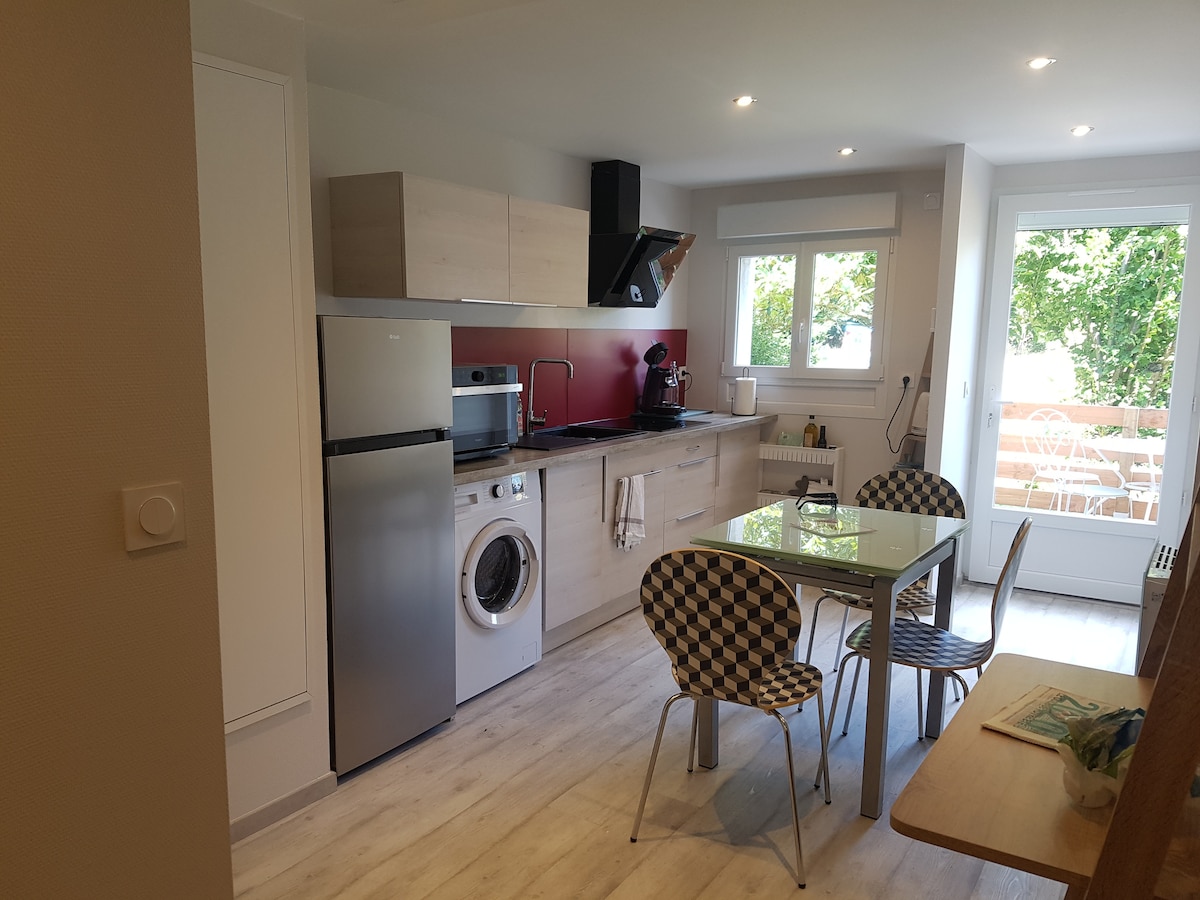 Situato in fondo al nostro giardino, con una terrazza privata, questo alloggio in legno è molto accogliente. Ha anche il vantaggio di essere molto vicino alla città (15 minuti dal centro della città in autobus o in bicicletta), dal campus (5 minuti) e dall'ospedale (5 minuti). Avete un piccolo bagno con WC e doccia. Il lavello in cucina serve come lavandino. Avete il wifi. È molto facile parcheggiare in strada ed è gratuito. Apprezziamo anche le lunghe durate.