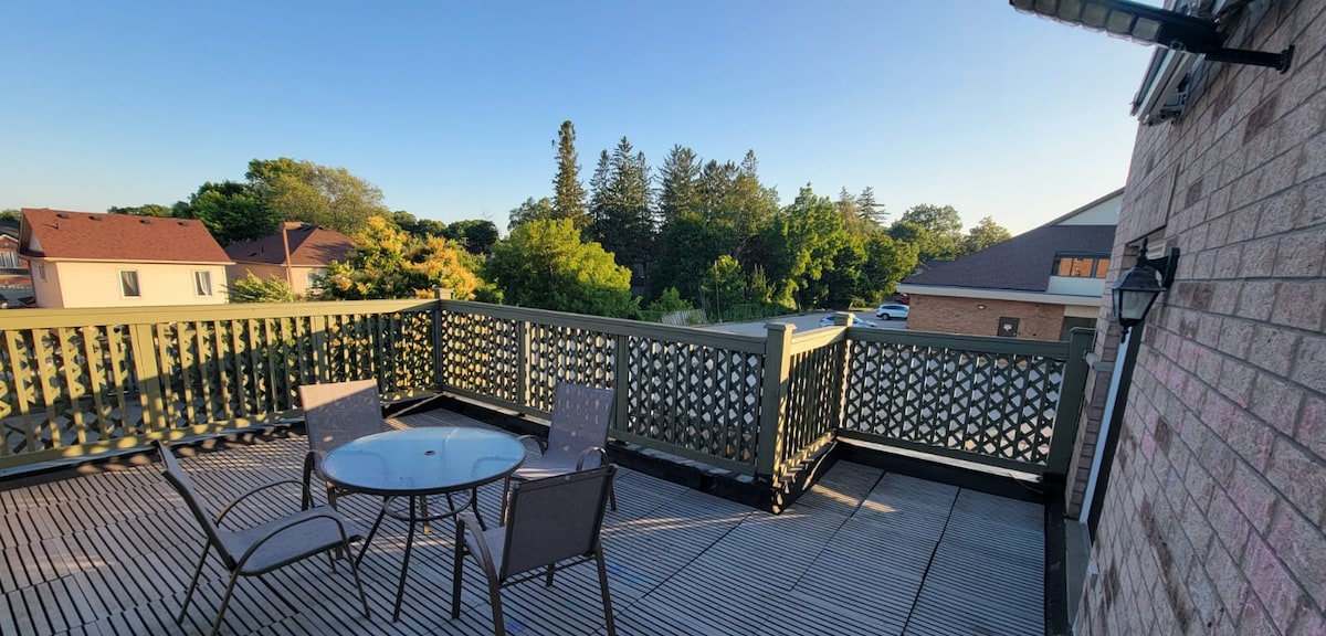 Nuova casa (costruita nel 2024). È vicino a spiagge, parchi, centri commerciali, negozi, ristoranti, sentieri, banche, college e università. L'intera casa e un bagno privato in camera. 5 persone possono soggiornare facilmente. Due camere da letto, 3 letti e 1 bagno. 30 minuti in auto dal centro di Toronto. A 5 minuti a piedi per gli autobus e i negozi, i ristoranti. 12 minuti in auto dallo zoo di Toronto. 10 minuti in auto dalla Highway 401. Cucina attrezzata, forno, microonde, frigorifero, tostapane, pentole, stoviglie. UHD TV Netflix, Disney, Prime