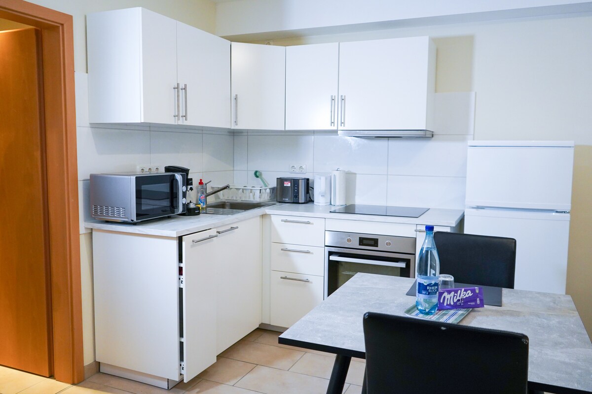 - Letto king-size da 180 cm - Benvenuti nei nostri moderni mini-appartamenti nel cuore di Kaiserslautern! Perfetti per giovani professionisti, studenti e pendolari, ogni unità è completamente attrezzata per le vostre esigenze quotidiane: angolo cottura con frigorifero, forno a microonde, macchina Nespresso e bollitore, un letto accogliente, smart TV e bagno privato con doccia. Goditi la posizione centrale, vicino all'università, ai negozi e ai mezzi pubblici. Aree comuni come la terrazza, la lavanderia e la hall completano l'offerta.