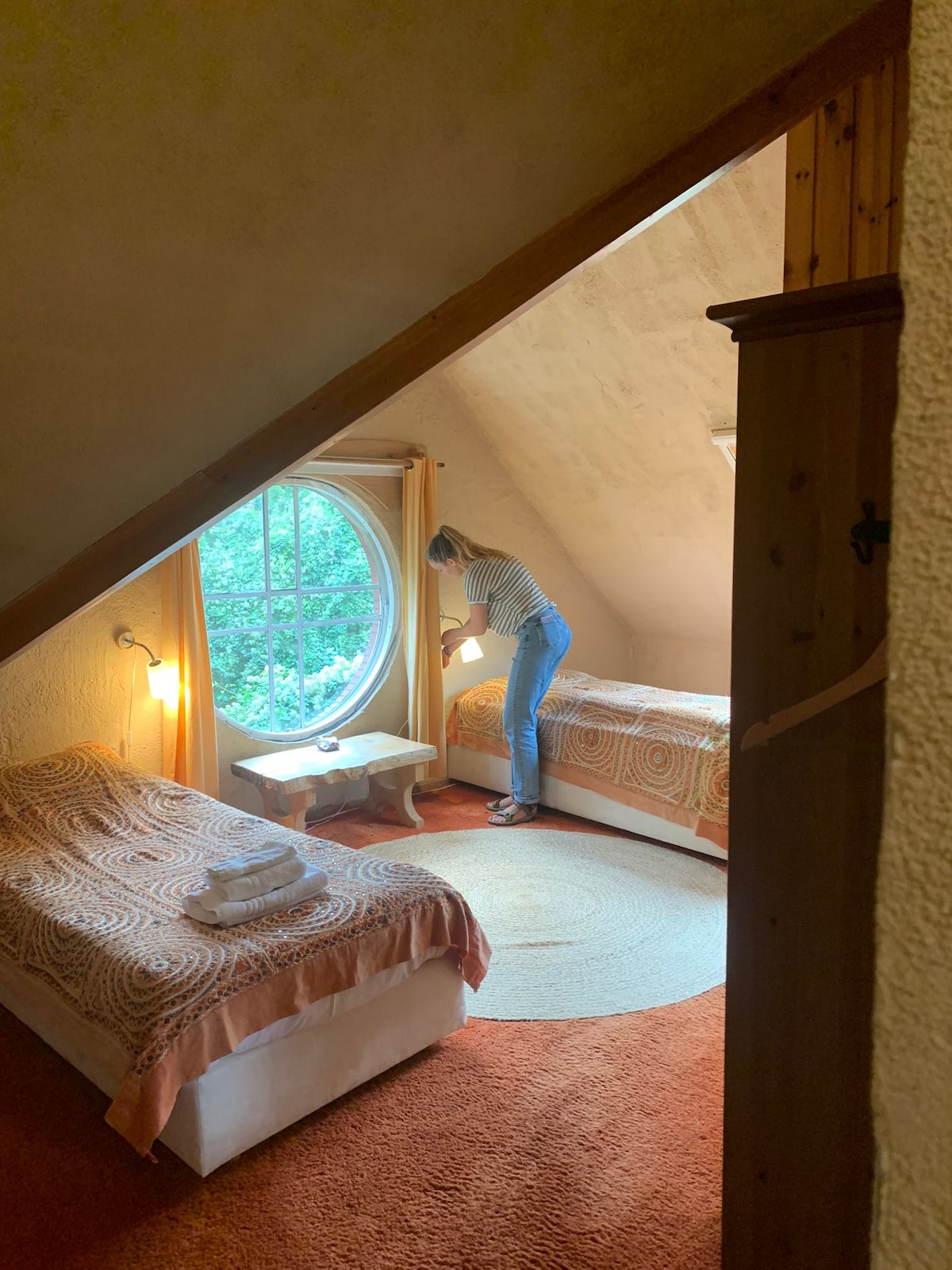 Questa camera del B&B è stata ristrutturata nel 2023 e si trova nel cuore del centro di Haamstede, recentemente ristrutturato e senza auto. (Nota: sentirai le campane della chiesa!). La camera (situata al primo piano) dispone di un letto matrimoniale, un salotto con due poltrone, una TV (con Netflix), una macchina Nespresso, un bollitore e un piccolo frigorifero. Hai anche un bagno privato (con doccia e vasca) e un WC separato. A 50 metri a piedi dal B&B, sono disponibili diverse opzioni per la colazione.