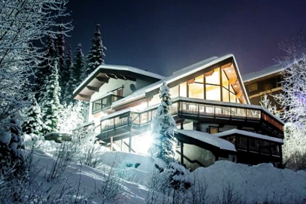Our beautiful Chalet is located in the heart of Sun Peaks a short walk to the village. Our property is a "True Ski In", with runs off the Morrisey coming right into our back yard. Free Shuttle pickup is a 2 minute walk and takes your group to village and lifts. You will enjoy beautiful views and an inviting Hot tub on the front deck where you can enjoy a relaxing after ski soak with views of the Mountain and ski runs. Kids can take their sliders behind the house and enjoy sledding.