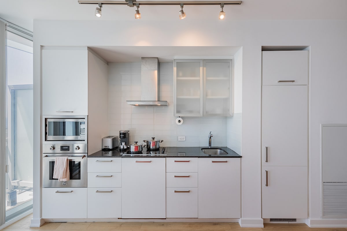 Intero appartamento elegante e moderno nel cuore del centro di Toronto! Raggiungi A PIEDI le principali attrazioni di Toronto: → CN Tower / Acquario / Rogers Centre (7 minuti) → Scotiabank Arena (2 minuti) → Union Station (2 minuti) Lungomare del→ lago Ontario (3 minuti) → Accesso diretto al PATH sotterraneo In evidenza: Accesso → sicuro all'edificio con portineria 24 ore su 24 → Ampio balcone con set da patio Caminetto → elettrico → Lavatrice + asciugatrice con detersivo →SOGGIORNI MENSILI: accesso al centro fitness, alla piscina e alla sauna!
