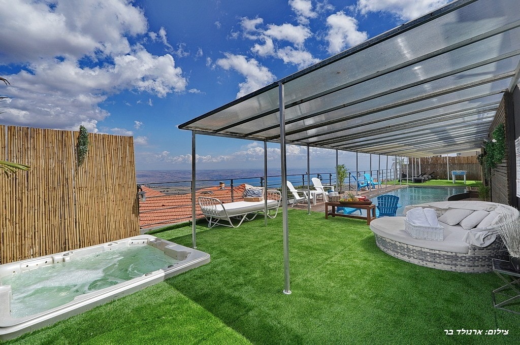*Nell'appartamento è presente una stanza di sicurezza * L'appartamento perfetto per le tue vacanze per coppie o famiglie Un enorme balcone con bagno di schiuma che si affaccia su una vista spettacolare e mozzafiato Tavolo da biliardo, air hockey, ping pong e poker Netflix, FreeTV e console di gioco Cucina completamente attrezzata con tutto il necessario per un soggiorno breve o lungo. Un nuovo appartamento progettato secondo standard molto elevati L'appartamento è situato a Migdal vilige. 5-10 minuti in auto da Tiberiade e dal Mare di Galilea