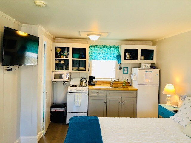 Monolocale di 23 metri quadrati recentemente ristrutturato presso Near Beach Rentals. A 275 metri da Glendon Beach. Il monolocale completamente arredato ti aspetta per la tua vacanza a Cape Cod. Vai in spiaggia al mattino: sei abbastanza vicino da tornare a piedi per pranzo. Il monolocale è dotato di letto matrimoniale, letto singolo, angolo cottura con piano cottura, frigorifero, macchina per il caffè e forno a microonde, aria condizionata, smart TV da 40", bagno recentemente ristrutturato, wifi e accesso al cortile condiviso con griglie e mobili.