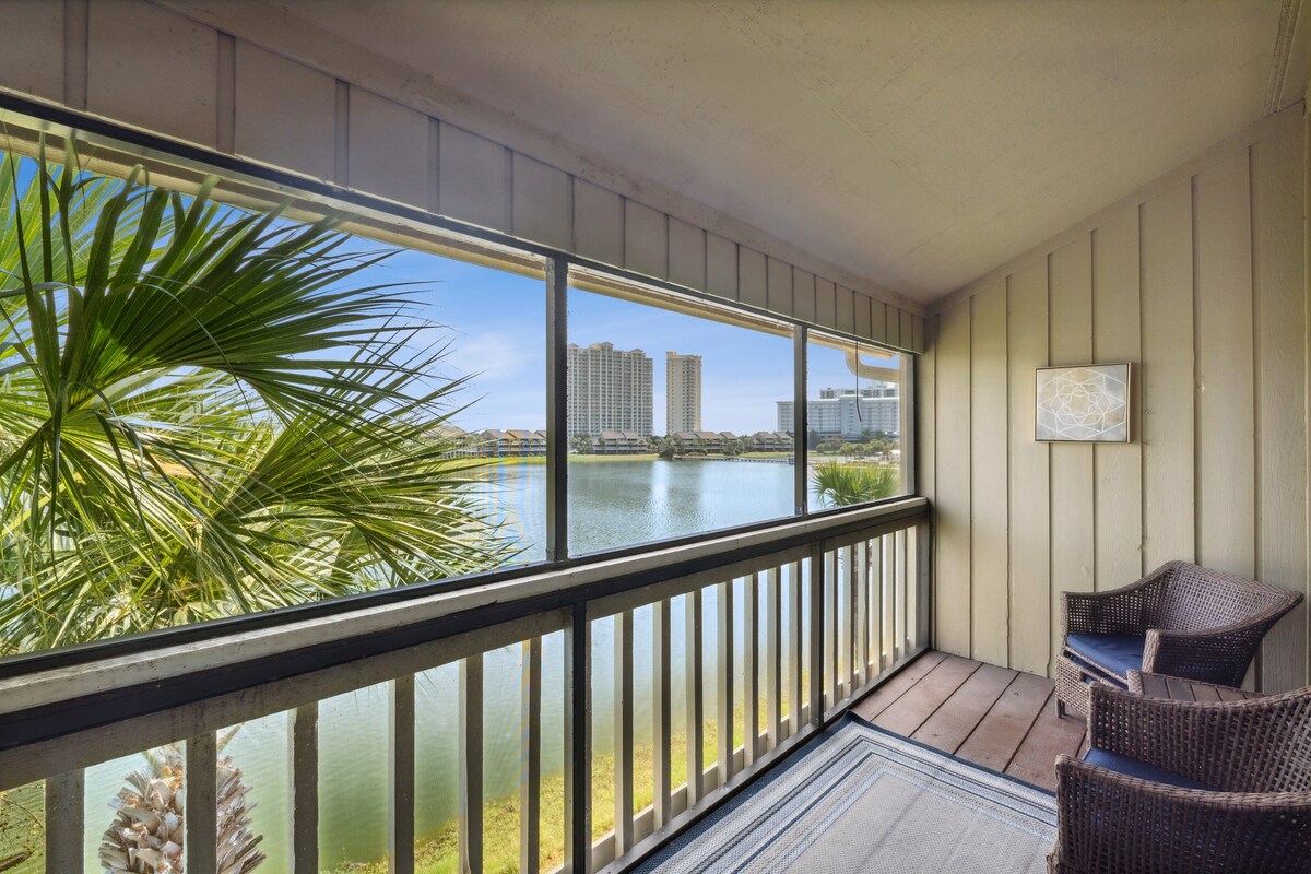 Destin Resort Vacations è orgogliosa di presentare questo appartamento ristrutturato, lussuoso, pulito e luminoso al piano terra con 1 camera da letto/1 bagno con una splendida vista sul campo da golf e sul lago e a pochi passi dalle più belle spiagge di sabbia bianca e dalle acque color smeraldo della Florida! 6 posti letto con letto king size nella camera da letto principale, letti a castello singoli in corridoio e divano letto queen size. Splendida doccia moderna in piastrelle con vetro senza cornice e rubinetteria dorata. Adiacente alla piscina condominiale, accesso a 4 piscine aggiuntive del resort, parco giochi, campo da basket, campi da tennis e barbecue.