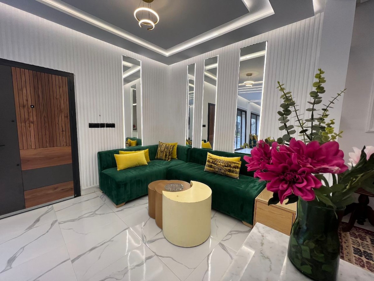 beau appartemnet situe dans un quartier residentiel chic , de 180 m2 ideal pour famille ou professinnels exigeants . avec vue panoramique , 4 Balcons,cuisine équipée de plaque en vitro et four et tous le necessaire 3chambre entourée restaurants et pâtisseries, à côté de la salle du sport moving et spa avec accès a parking privé et ascenseur et doté des cameras de surveillance 24/7 salon - salle a manger vaste et ouvert parfait pour recevoir des amis ou se detendre en famille .wifi haut débit