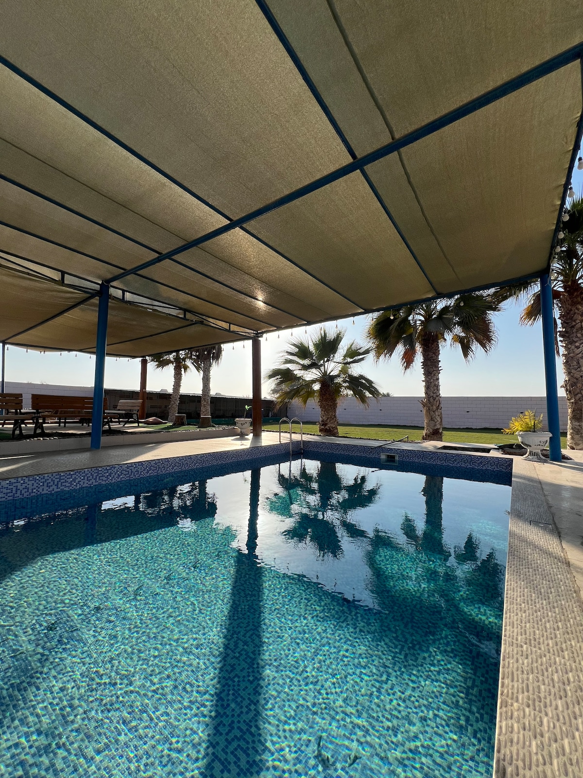 Welcome to Al Narjis Chalet — a spacious and cozy getaway perfect for families, couples, and friends. This private chalet offers complete privacy, a warm heated pool, and plenty of room for gatherings and celebrations. Designed to host groups comfortably, the space can welcome 10 to 20 guests, making it ideal for family stays, girls’ trips, romantic escapes, and weekend hangouts. Enjoy a relaxing atmosphere, beautiful corners for photos, and all the comforts you need for a memorable stay.