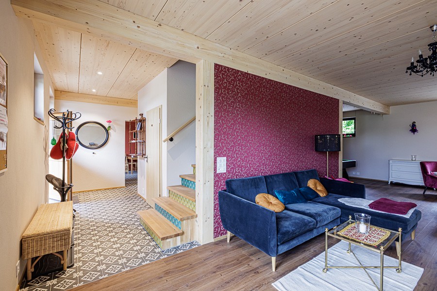 Ihr übernachtet im denkmalgeschützten Bauernhaus, welches 2025 renoviert wurde. Das Haus verfügt über 4 Schlafzimmer, 3 Badezimmer, 2 Küchen, sowie einem Aufenthaltsraum mit Billardtisch. Im Garten stehen diverse Sitzmöglichkeiten, eine Feuerstelle, ein Hotpot. Tierfreunde können sich an vielen Tieren erfreuen: Lamas, Alpakas, Kühe, Hühner, Kaninchen, Schafe, Katze und Hund. Mit den Alpakas & Lamas kann ein Trekking gebucht werden.