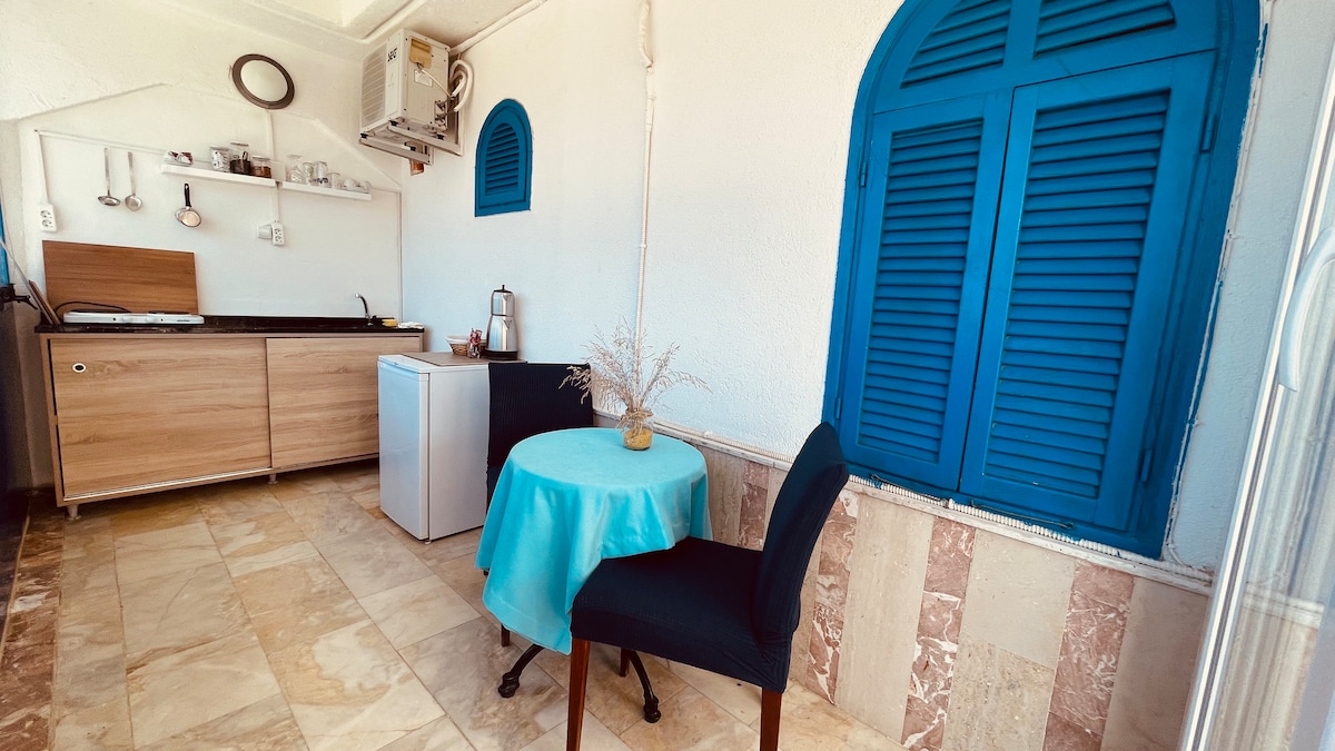 Questa stanza, decorata con decorazioni fatte a mano a Sığacık, Kaleiçi, ti porta il fascino del concetto hippie bohemien. Questa stanza speciale, situata all'interno di Riccio, il più famoso e unico caffè di Sığacık, con la sua speciale architettura a 3 piani, è stata progettata per offrirti un'esperienza unica con il suo letto per 2 persone, la televisione, l'aria condizionata, l'amaca e l'ampio bagno. Nel bar al piano inferiore potrete gustare caffè a base di espresso, cocktail e snack sulla terrazza.