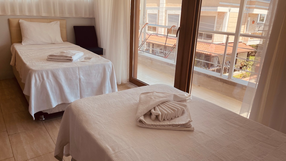 Decorata con decorazioni fatte a mano a Sığacık, Kaleiçi, questa stanza ti unisce all'affascinante comfort del concetto cubano. Situata a Riccio, il caffè unico più noto di Sigacik con la sua architettura privata, questa stanza privata è pensata per regalarti un'esperienza unica con un letto per 2 persone, un letto singolo, una TV, aria condizionata, un balcone e un bagno privato servizi igienici Nota: La camera ha una capienza di 3 persone, composta da 2 sezioni separate.