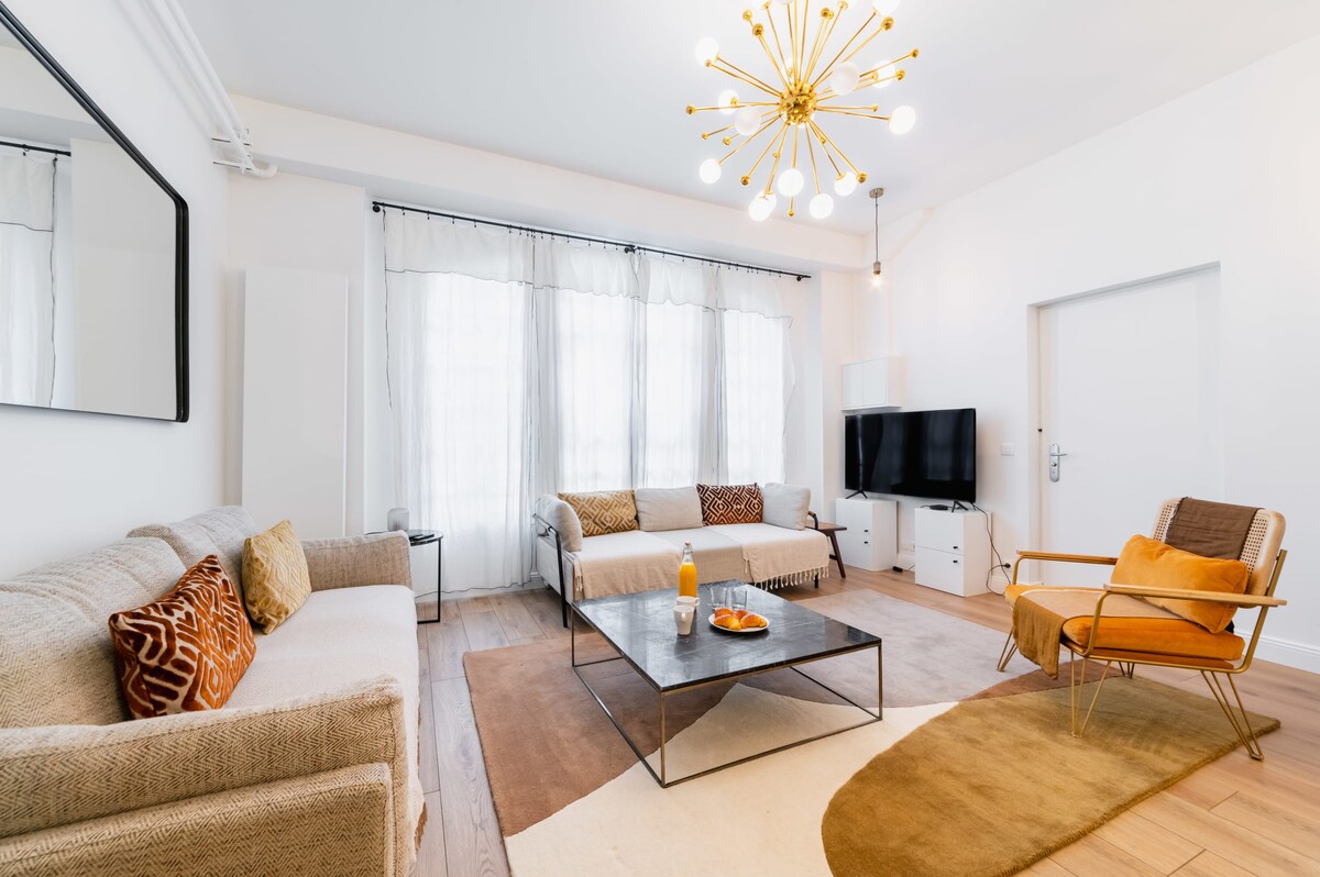 Scopri Parigi da questo splendido e nuovissimo gioiello con due camere da letto nel cuore del II arrondissement. A pochi minuti dai Grands Boulevards, dal Musée Grévin, dalla Borsa e dall'Opéra, è una base ideale per esplorare la città. Goditi uno spazio splendidamente decorato, elegante e minimalista con una cucina completamente attrezzata, aria condizionata centralizzata e un accogliente soggiorno progettato per il comfort. L'appartamento può ospitare fino a quattro persone ed è perfetto per un soggiorno elegante in famiglia o con gli amici.