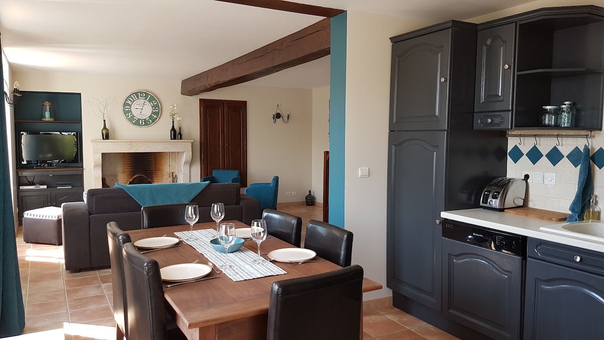 Le Gîte Couleur Détente, una piccola casa privata in pietra di paese dove regna la dolcezza e l'arte di vivere. Completamente ristrutturata da noi qualche anno fa e rimessa a nuovo da poco per accogliervi, questa casa di 80 m2 prevista per 5 persone non aspetta altro che voi, per le vostre vacanze, fine settimana con gli amici o viaggi di lavoro. Nota: le prenotazioni mensili non riguardano i mesi di giugno, luglio, agosto.