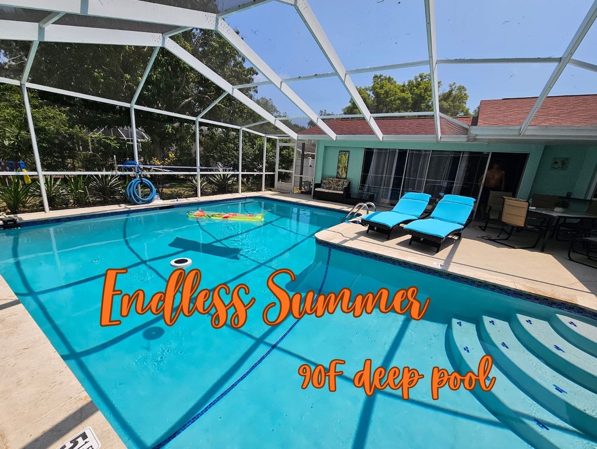 Estate senza fine 90F Pool House a 5 minuti dalle spiagge!